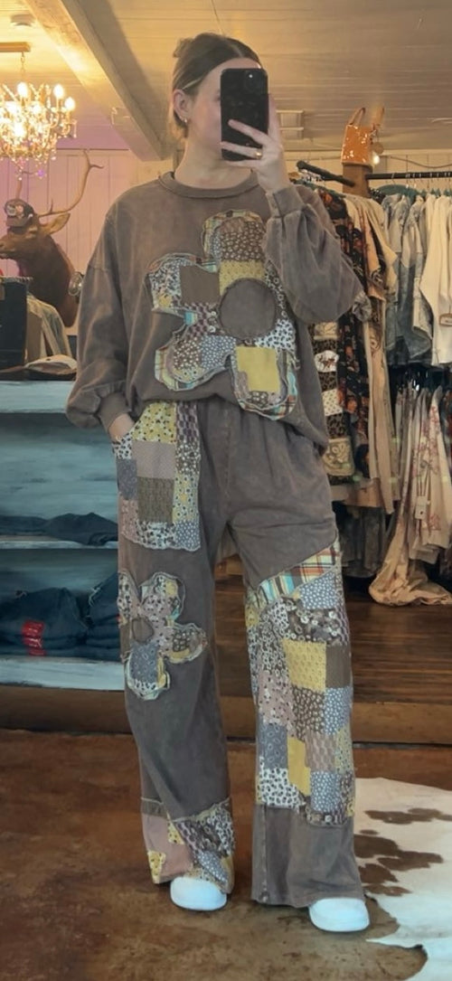 Boho Patch Daisy Long Sleeve Sweatshirt